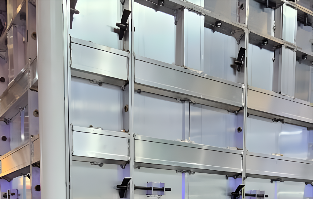 O sistema consiste em painéis extrudados e fabricados em liga de alumínio, e unidos mecanicamente, dispensando o uso de soldas estruturais, esta união nestes painéis é feita através de pinos e cunhas.